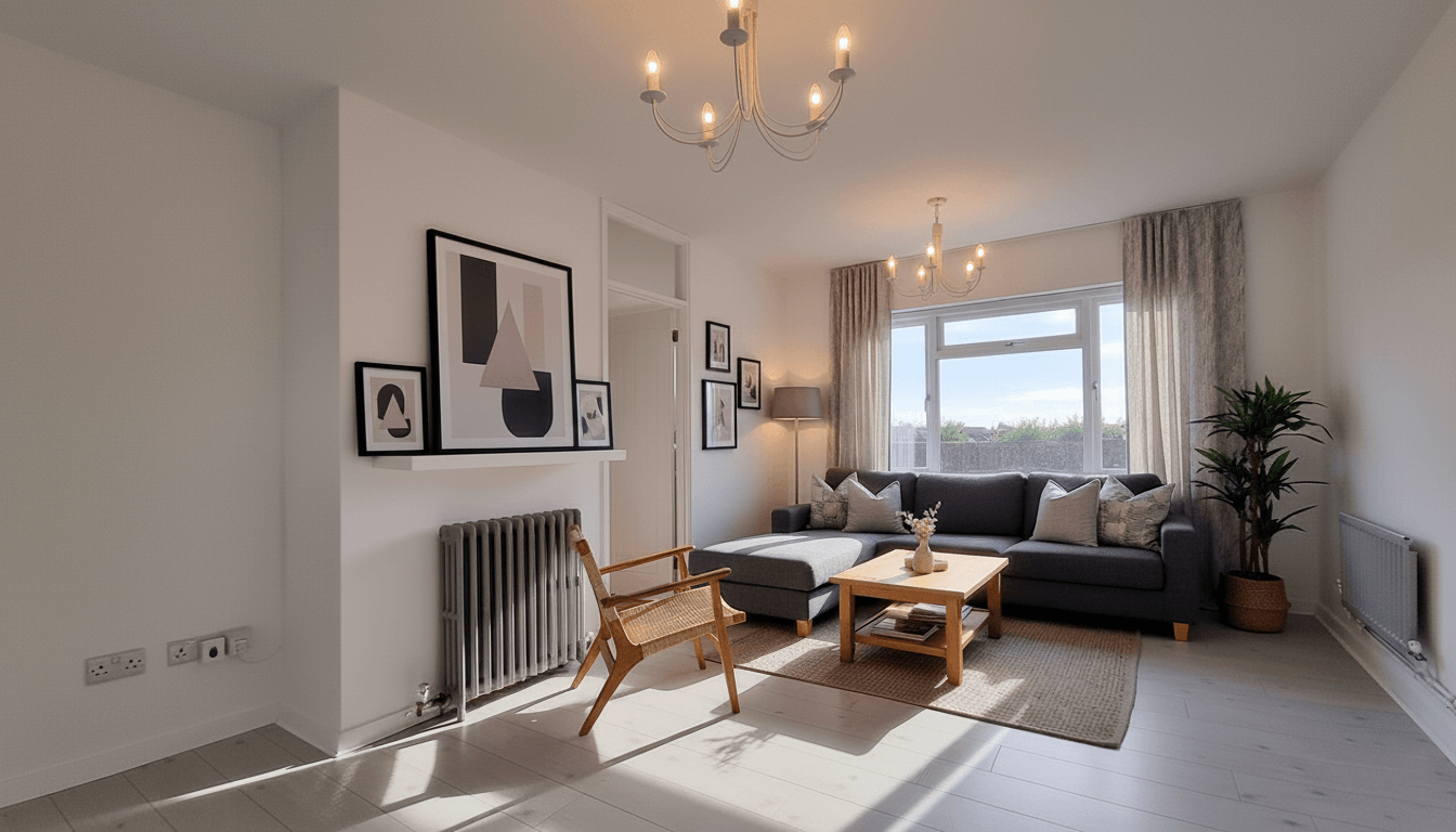 The living room is a bright and welcoming space, positioned to the rear and enjoying a pleasant outlook.